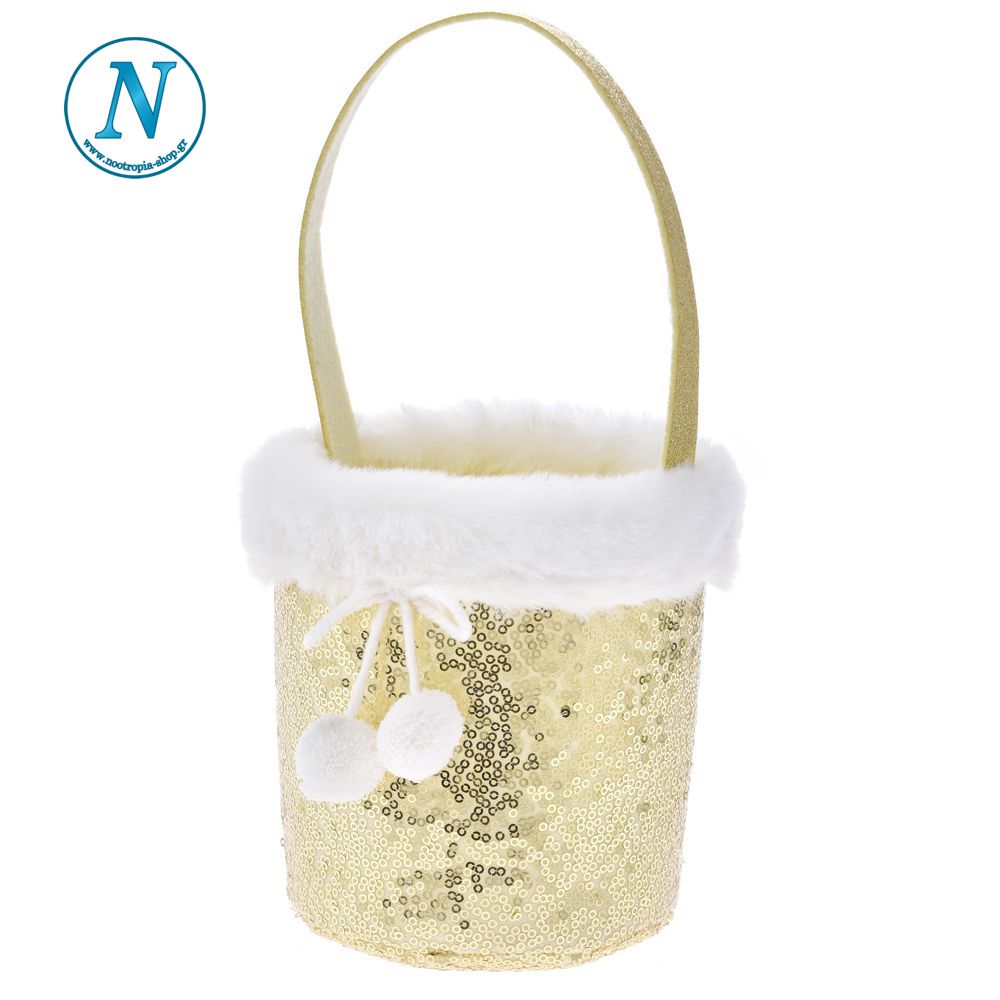 Καλάθι τσόχινο σε χρώμα χρυσό με χεράκι για το χριστουγεννιάτικο τραπέζι 14χ12χ14 εκ.