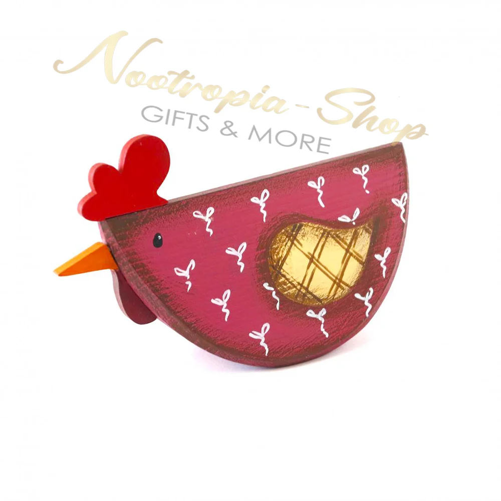 Χειροποίητη ξύλινη κουνιστή κοτούλα Βουργουνδίας ή Μπαρόκ σε δύο χρώματα Μπορντό & Φυσικό Μπλέ.