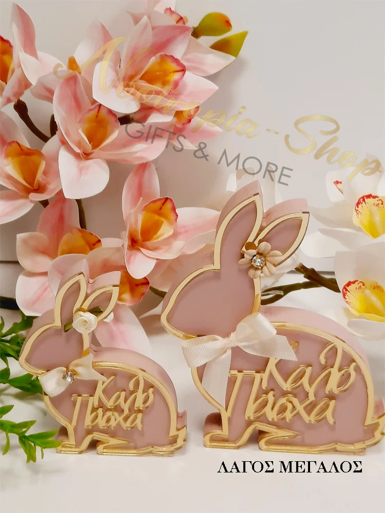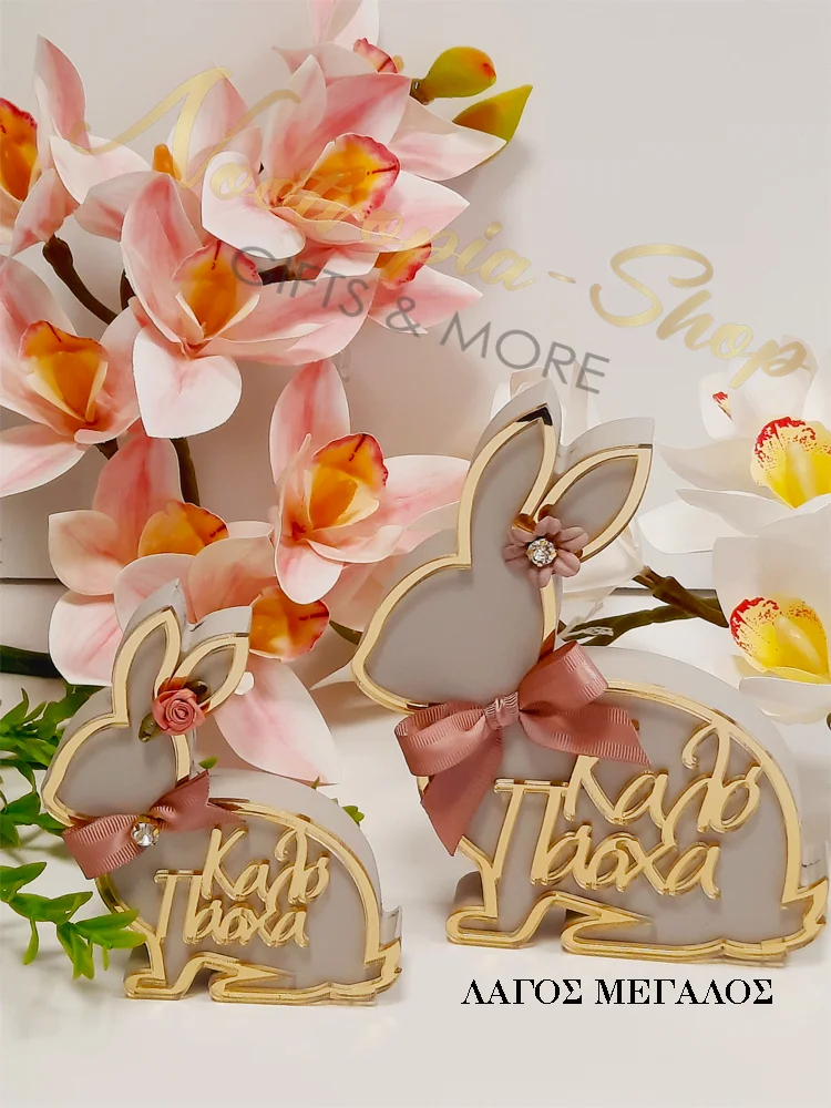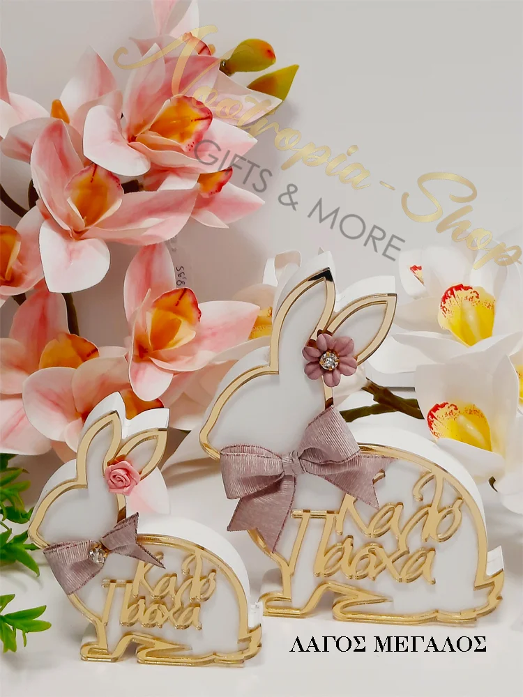 Προσθέστε μια γιορτινή πινελιά στη διακόσμηση του Πάσχα με αυτόν τον υπέροχο διακοσμητικό λαγό! Κατασκευασμένος από υψηλής ποιότητας ξύλο και plexiglass, διαθέτει χαραγμένη την ευχή “Καλό Πάσχα” σε κομψά γράμματα και λεπτομέρεια φιόγκο και στράς.