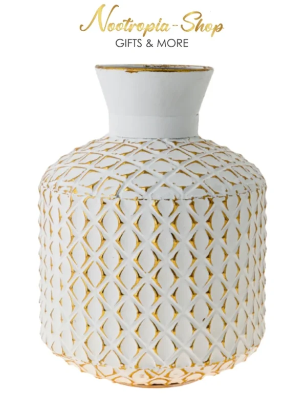 Μεταλλικό διακοσμητικό βάζο σε χρώμα χρυσό λευκό και διαστάσεις 27,5χ27,5χ37,5 ΕΚ.