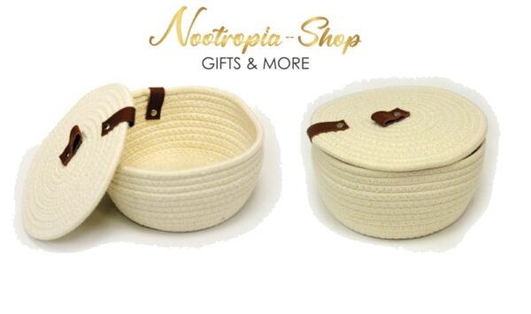 Βαμβακερό στρογγυλό καλαθάκι με καπάκι στυλ boho σε χρώμα εκρού 18χ10 εκ.