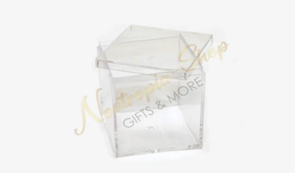 Κουτί διάφανο κύβος πλεξιγκλάς με καπάκι. Το πλεονέκτημα αυτού του κουτιού είναι η διαφάνεια και η απλότητά του.