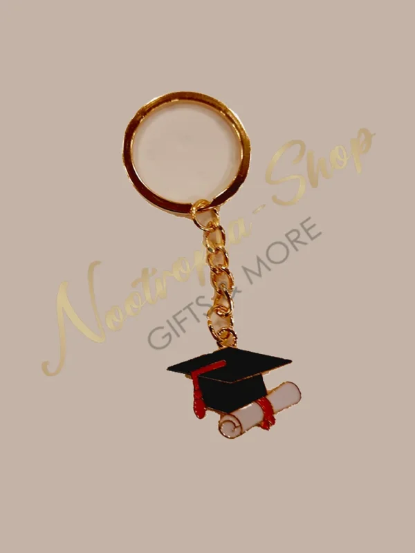 Για την αποφοίτηση δώρο μπρελόκ με μεταλλικό καπέλο και πτυχίο.