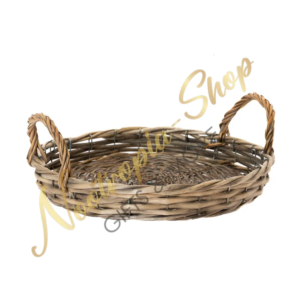 Στρογγυλή ψάθινη βάση σε χρώμα γκρί με χεράκια και διαστάσεις Φ31χ4 εκ. & ύψος με τα χεράκια 11 εκ.
